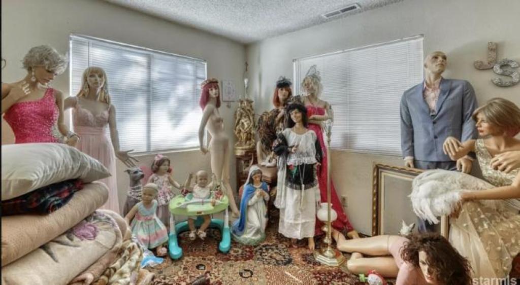 Cette maison présentement à vendre sur le site Zillow semble bien normale. Une fois à l’intérieur, c’est là qu’on sursaute un peu. C’est à partir de la onzième photo sur le site immobilier qu’on remarque des photos avec des mannequins partout dans les pièces. Le propriétaire qui vivait dans cette maison ne voulait vraiment pas se sentir seul, il y a beaucoup de mannequins dans les pièces et même des poupées. La maison se vend 650 000$ (on ne sait pas si les mannequins viennent avec la vente) et elle est située à South Lake Tahoe en Californie. Vous pouvez visiter la maison sur le site. Crédit photo: Zillow.