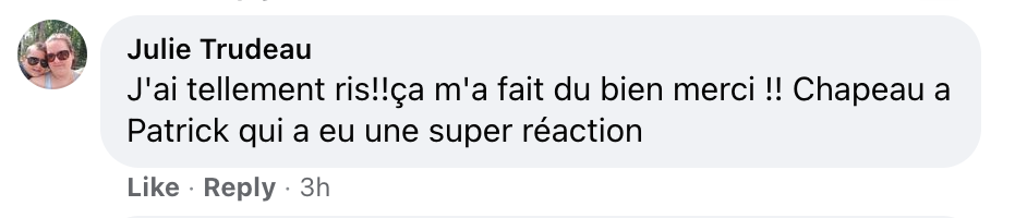 Après avoir raconté cette histoire, Patrick Huard se met à exploser de rire en tombant dans sa chaise. Dominic Arpin se met à sauter partout avant de dire à Mélanie que c’est Patrick Huard qui a réalisé le film Les 3 petits cochons. Tout le monde explose de rire sur le plateau, on peut dire que c’est franchement un bon blooper.