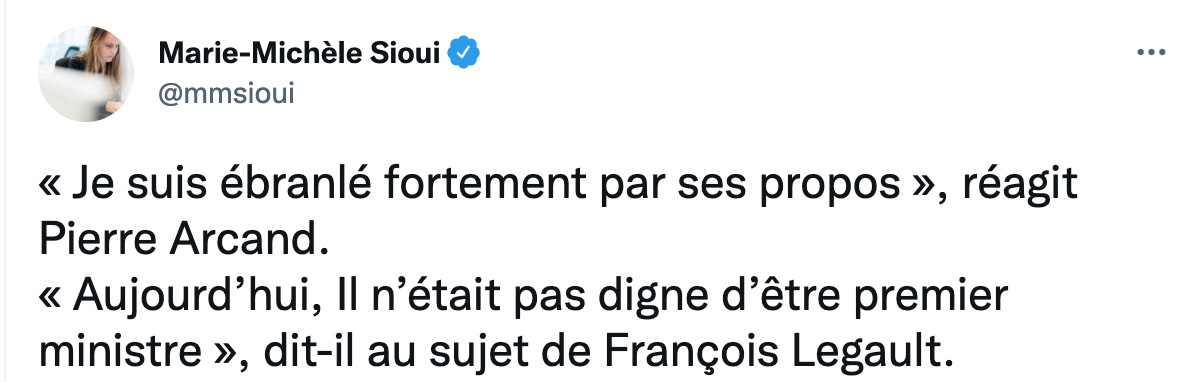 François Legault a aussi écrit sur les réseaux sociaux: « Pierre Arcand est un ami. C’était une mauvaise blague. Je me suis excusé. » et Pierre a écrit: « Les débats peuvent être durs à l’Assemblée nationale lorsqu’on défend nos convictions. Néanmoins, j’espère que le PM saura rester respectueux et approprié dans ses propos à l’avenir. ».
