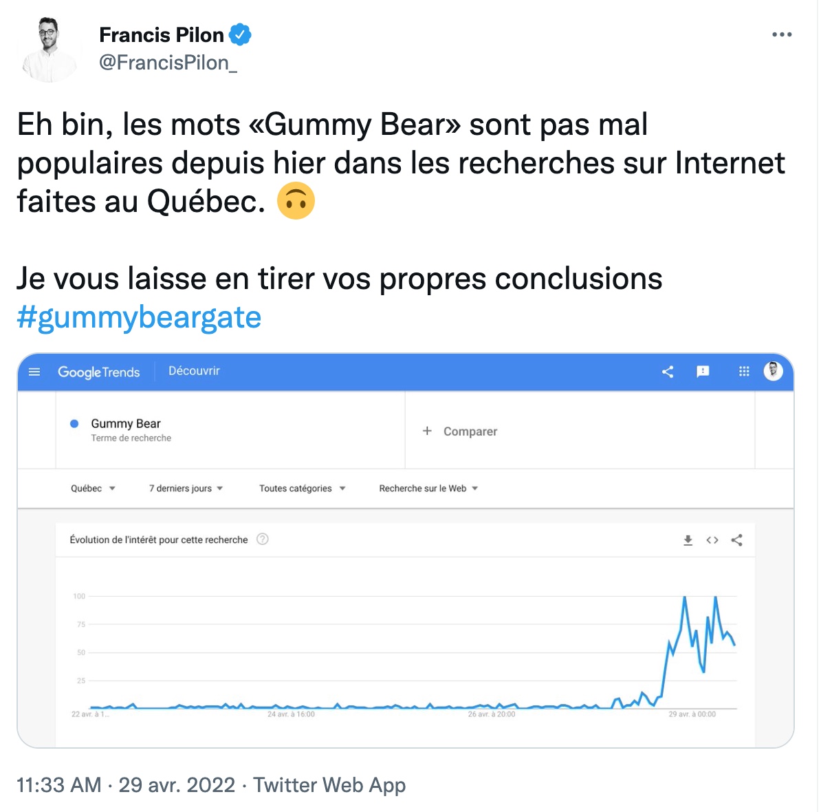 Je me rebranche sur Twitter après une journée dans un local de répétition au théâtre et j’en perds des bouts. On parle de quoi? Et l’histoire des Teddy bear gummy y a un lien? https://t.co/qIKfYfu7PD