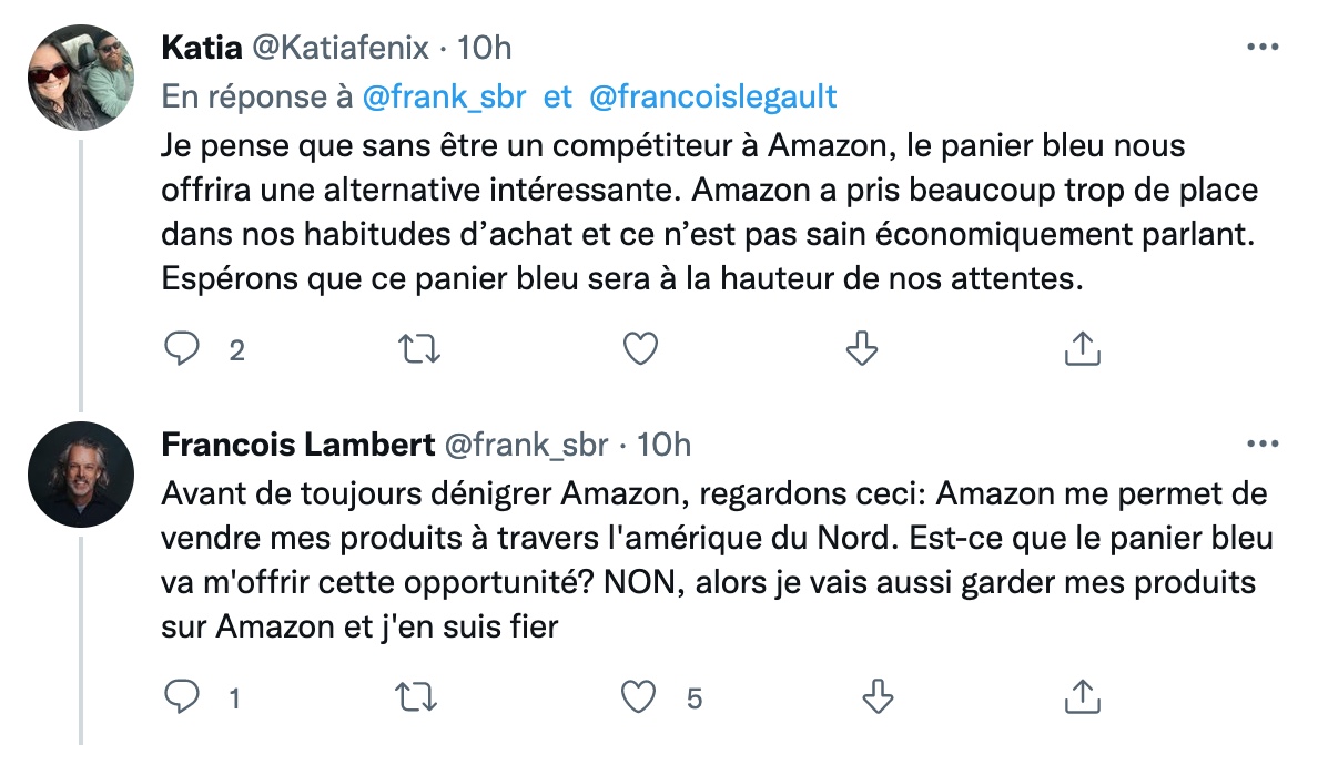 François Lambert n’a pas apprécié le message du premier ministre du Québec. Il lui a répondu: « J’espère que vous blaguez. Osez comparer LePanierBleu avec Amazon, c’est comme croire que notre enfant qui a marqué 2 buts en novice B va se rendre dans la LNH. Vous savez qu’avec Amazon, je peux vendre mes produits à travers l’Amérique et faire rayonner le Québec en exportant? ». François Lambert en a aussi profité pour répondre à plusieurs internautes.