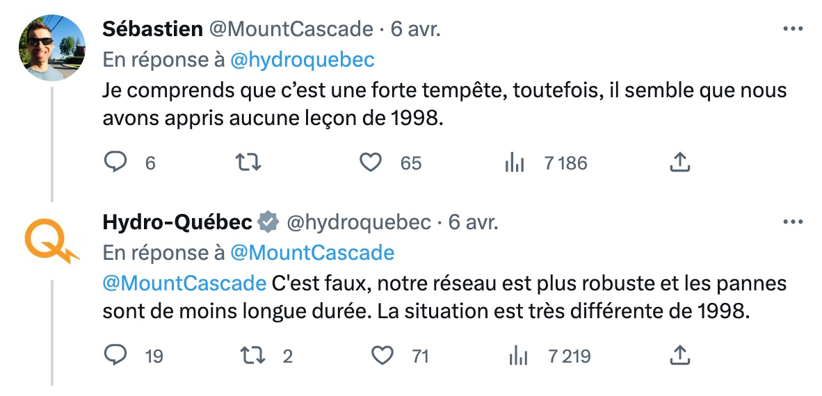 L’équipe d’Hydro-Québec répond avec punch à un commentaire