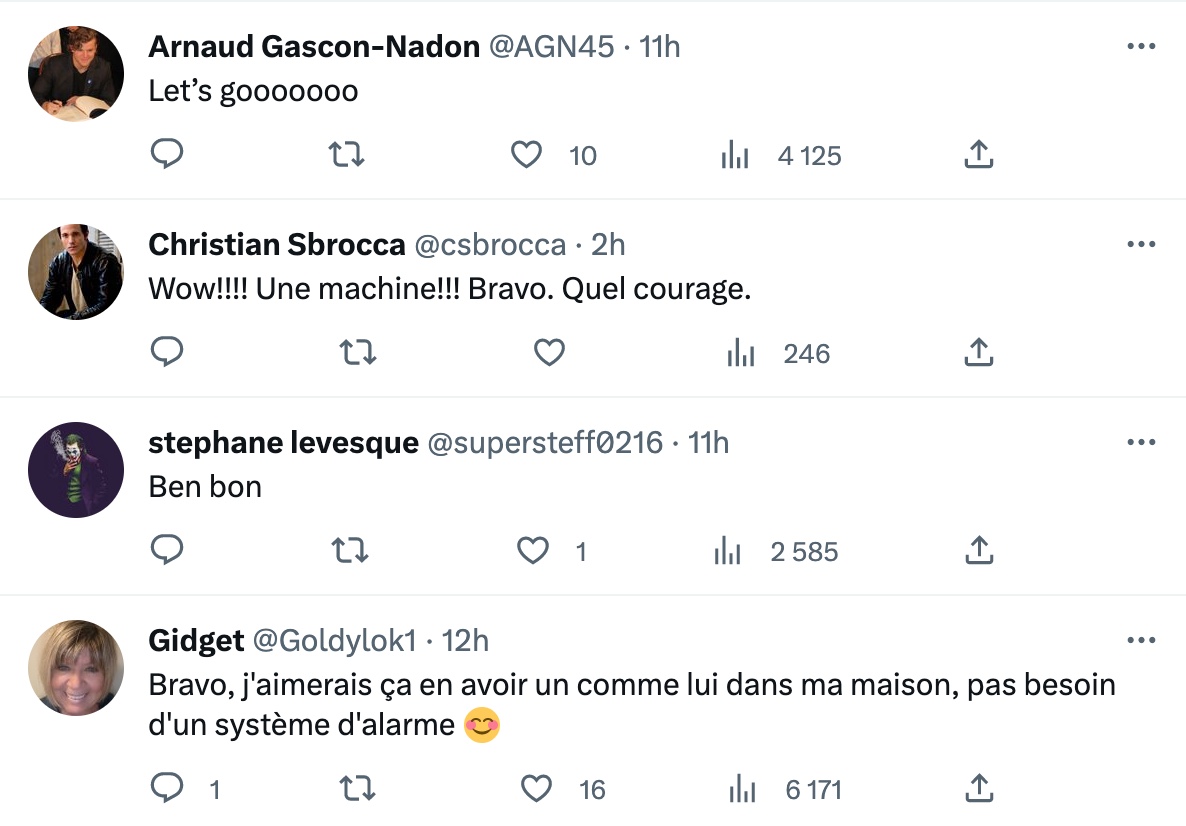 Le journaliste de TVA Kevin Crane-Desmarais a mis en ligne une vidéo qui circule pas mal sur le web. On peut voir 2 voleurs qui s’introduisent dans une résidence. Le propriétaire a vite remarqué leur présence et il a décidé d’affronter les 2 individus. Il s’est même permis d’en ramener à l’intérieur de la maison quand un des deux voleurs voulait se sauver.