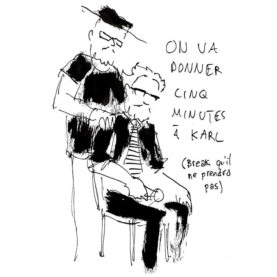 Les membres des Cowboys Fringants ont partagé les dessins en écrivant: « Superbe série de dessins représentant notre passage au FEQ le 17 juillet. Merci à @fdesharnais pour ces images qui valent 1000 mots ! ».