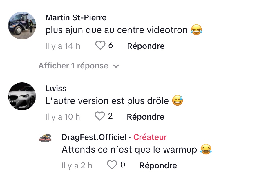 On peut dire que l’équipe du Dragfest, une course de camions lourds qui se tiendra le 12-13-14 juillet, a eu une excellente idée! Ils ont invité le fan de Pantera à faire la promotion de leur événement dans une vidéo TikTok. Avec la même joie et intensité, l’homme dit ses fameuses répliques avec le même ton: « On va tout casser », « Tel dit, ça va brasser » et « On va tourner en rond, pis là, ça va partir! ».