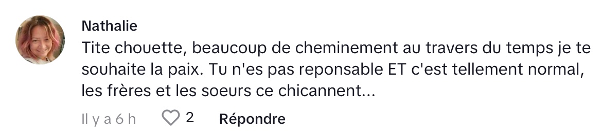 Dans l’extrait mis en ligne sur TikTok, Mélissa parle des derniers moments avec sa petite soeur. C’est un moment touchant qu’elle nous partage en ouvrant son coeur de la sorte. On capte l’ampleur de cette blessure qui est la plus grande épreuve d’une vie.