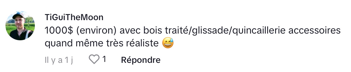 Dans les commentaires, plusieurs internautes l’invitent à utiliser les parcs de quartier, trouver bricoleur qui pourrait lui faire un ou encore en chercher un usagé.
