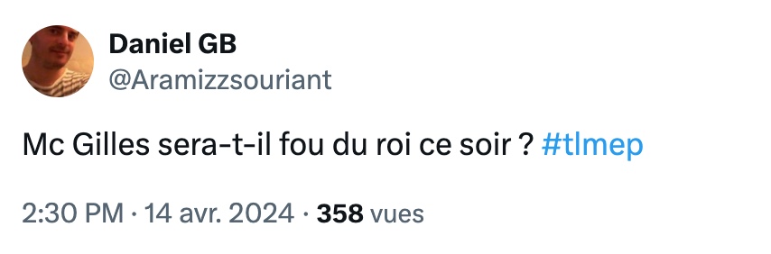 Est-ce que MC Gilles va revenir dans le rôle du fou du roi à TLMEP? Pour l’instant, on ne le sait pas.