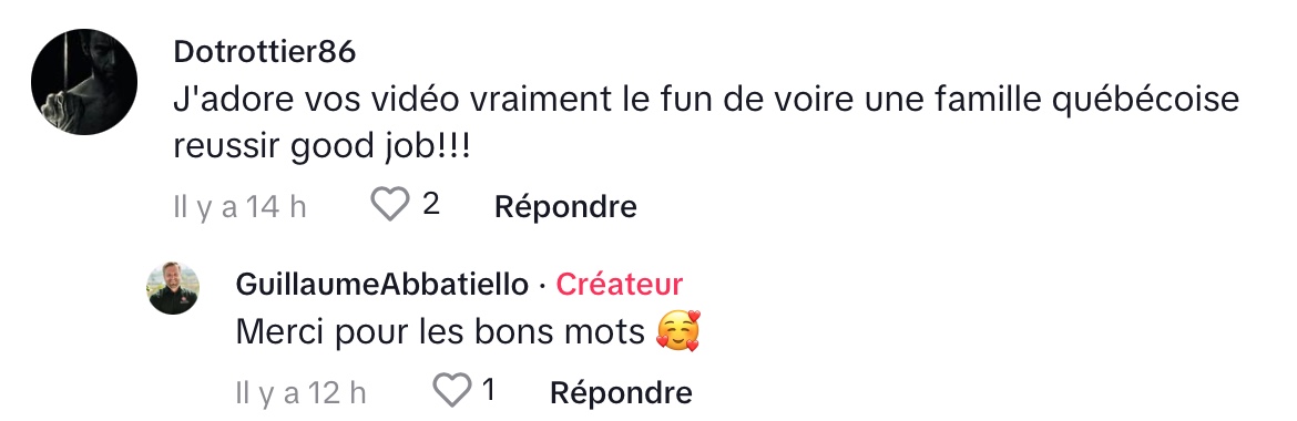Guillaume Abbatiello, un des propriétaires des restaurants Pizza Salvatoré, est pas mal actif sur TikTok. Récemment, il a fait une vidéo où il ne ménageait pas ses mots à l’endroit d’un entrepreneur en construction. Il parle aussi sur sa chaîne de l’évolution de son entreprise, de la réalité de gérer les Pizza Salvatoré et il parle de motivation. On peut dire qu’il fait du contenu divertissant et intéressant.