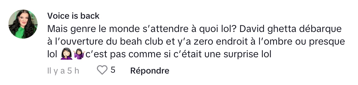 À lire aussi: Cette TikTokeuse réplique à ceux qui chialent sur le Beachclub