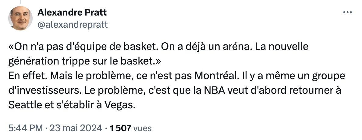 On peut lire dans le message d’Alexandre: Le niveau de sottises sur Montréal entendues à BPM Sports aujourd’hui est consternant. Ma préférée, dans la même phrase: «On ne peut pas trouver de stationnement au centre-ville, c’est complètement mort.» Yogi Berra n’aurait pas dit mieux!