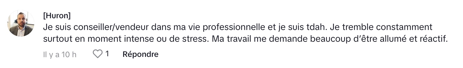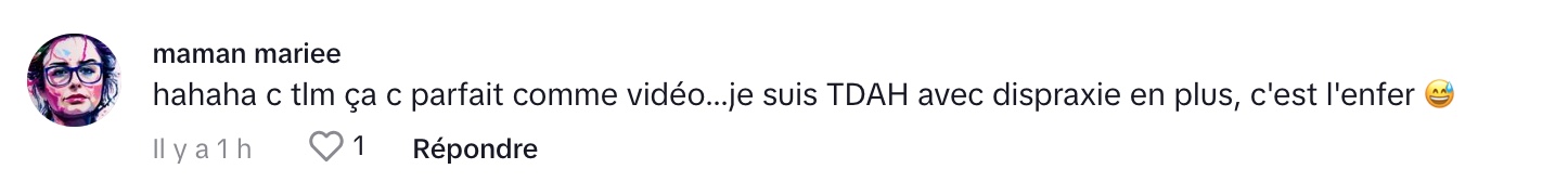 On peut l’entendre dire dans la vidéo: Premièrement, salut. J’ai toujours pensé depuis 24 ans que j’étais normale, que j’étais juste un petit peu spicy. Tu vois que le TDH, c’est un trouble neurodéveloppemental. Pour ceux qui disent que je suis TDAH, je suis en crime parce que j’ai oublié de prendre la vaisselle. Le trouble neurodéveloppemental, c’est que ton cerveau, il n’est pas bien développé. Ça le dit dans le mot. Le lobe frontal, qui est comme un peu responsable ta personnalité, de tes émotions, de tout. Moi, il y a un petit problème à ce niveau-là.
