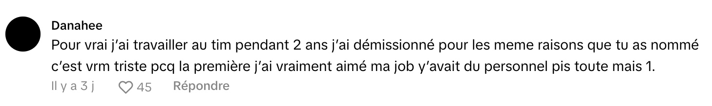 La TikTokeuse Chloé Morneau a décidé de raconter son expérience lors de sa plus récente commande dans un Tim Hortons. Ayant déjà travaillé chez Tim, elle explique que ce n’est pas toujours évident. Ceci étant dit, aujourd’hui c’est encore plus difficile car le manque d’employé cause vraiment des tracas à ceux qui sont derrière les comptoirs.