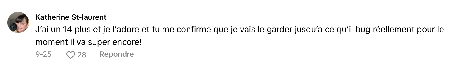 La TikTokeuse Kathleen Jobin a acheté un iPhone 16 Pro Max pour la somme de 2500$. Elle a été pas mal surprise en l’utilisant et en voyant le résultat de l’appareil photos. Elle a dû se rendre chez Apple pour se faire rembourser et reprendre son ancien téléphone.