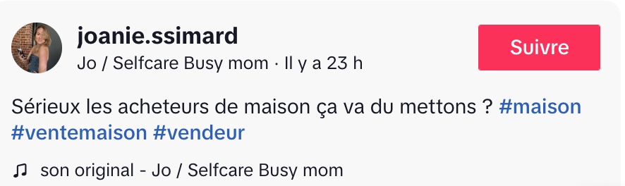 @joanie.ssimard Sérieux les acheteurs de maison ça va du mettons ? #maison #ventemaison #vendeur ♬ son original – Jo / Selfcare Busy mom