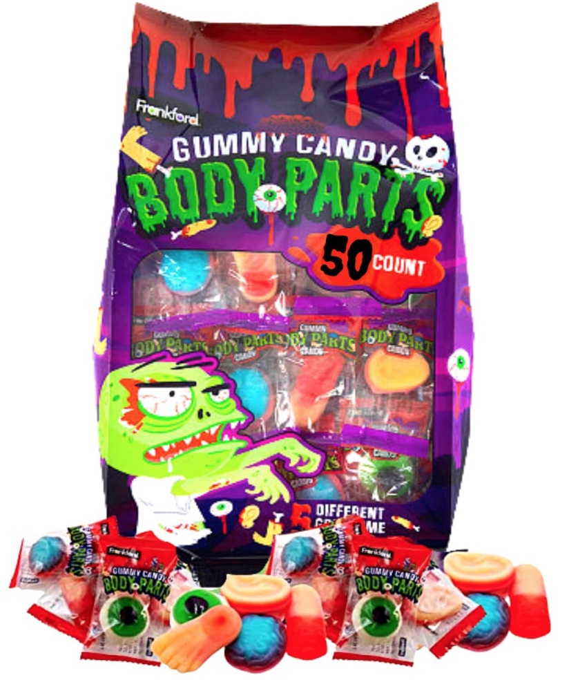 Cette année, transformez votre bol de bonbons d’Halloween en cauchemar délicieux grâce aux parties du corps gommeuses! Ce sac effrayant contient 50 pièces emballées individuellement incluant des globes oculaires, des pieds, des doigts, des oreilles et des cerveaux parfaites pour effrayer les petits monstres ou pour être la pièce maîtresse la plus dégoûtante de votre prochaine fête.