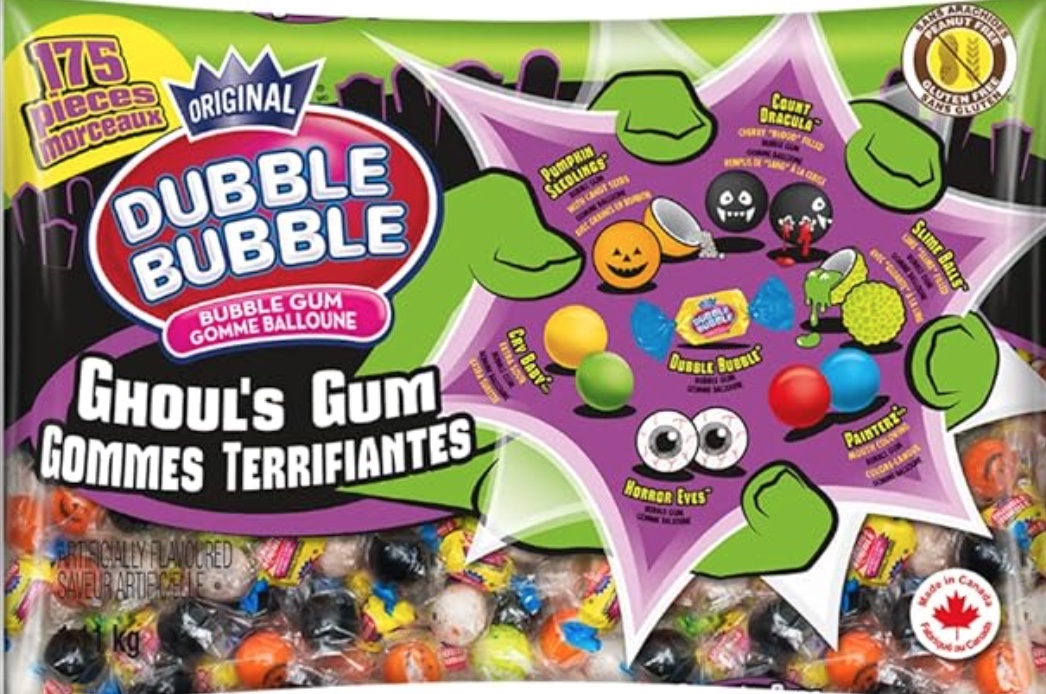 Avec plus de 0,9 kg de plaisir, ce sac de gomme à bulles Ghoulish contient environ 175 morceaux emballés individuellement pour la distribution! Cet assortiment étrangement délicieux de boules de gommes à double bulles sera assurément un favori auprès de tous les petits monstres qui viendront à votre porte.