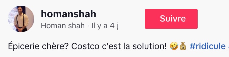 @homanshah Épicerie chère? Costco c’est la solution! 🤣💰 #ridicule #Costco #Épicerie #scam #CoûtDeLaVie ♬ Lost in Time – Orchestrova