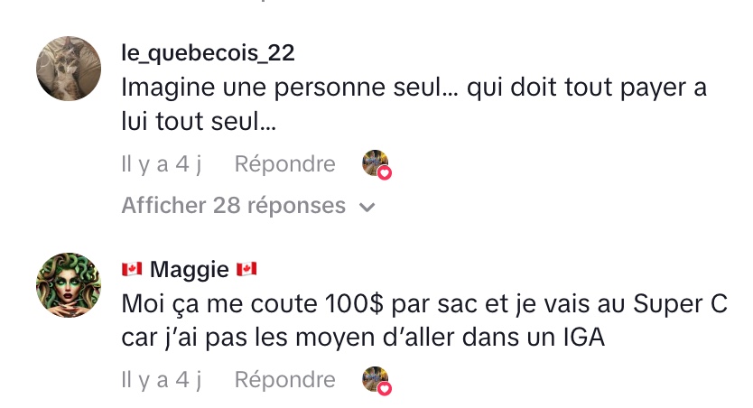 Pour accentuer son propos, il fait une comparaison avec un récent voyage à Barcelone, où la même quantité de provisions, incluant des produits plus sophistiqués, lui aurait coûté seulement 22 dollars. En concluant, il se demande « où on est rendus » au Québec en 2025 avec un tel niveau de service et de prix. (via Conneries QC)
