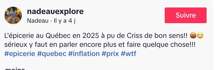 @nadeauexplore L’épicerie au Québec en 2025 à pu de Criss de bon sens!! 🤬🙄 sérieux y faut en parler encore plus et faire quelque chose!!! #epicerie #quebec #inflation #prix #wtf ♬ son original – Nadeau
