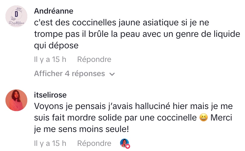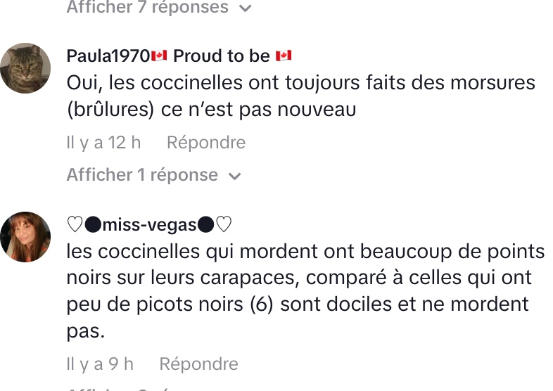 Dans une vidéo TikTok au ton humoristique et exaspéré, William Cloutier partage sa découverte troublante : les coccinelles se sont mises à mordre. L’anecdote prend racine lors d’une sortie aux pommes où il dit s’être fait « dépecer » par ces insectes, qu’il surnomme à la blague des « mangeuses de chair », l’obligeant à s’enduire de calamine.