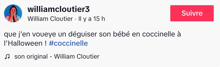 @williamcloutier3 que j’en voueye un déguiser son bébé en coccinelle à l’Halloween ! #coccinelle ♬ son original – William Cloutier