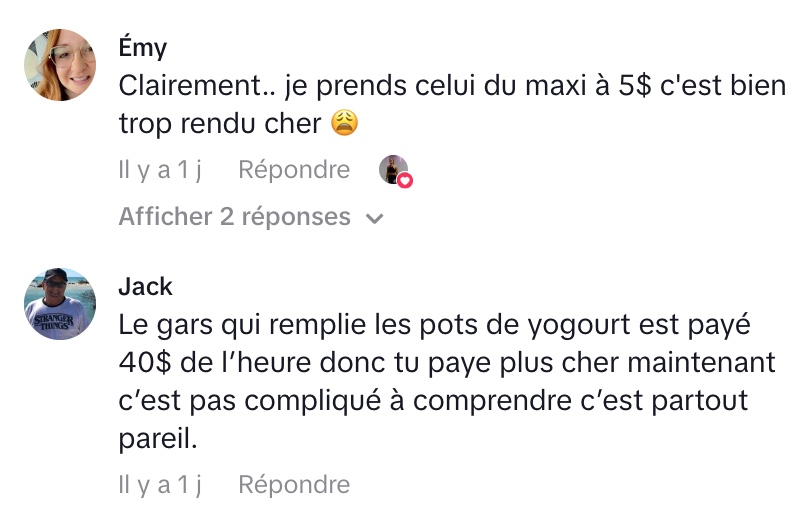 Dans un cri du cœur devenu viral sur TikTok, Erica interpelle ses abonnés avec un vibrant « Eille, on jase là ! » pour dénoncer le prix exorbitant d’un simple pot de yogourt à 8 $ à prix régulier. Visiblement exaspérée par l’inflation et le coût de la vie, elle avoue ne plus comprendre le « procédé » qui justifie de tels tarifs pour un produit alimentaire de base.