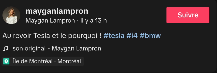 @mayganlampron Au revoir Tesla et le pourquoi ! #tesla #i4 #bmw ♬ son original – Maygan Lampron