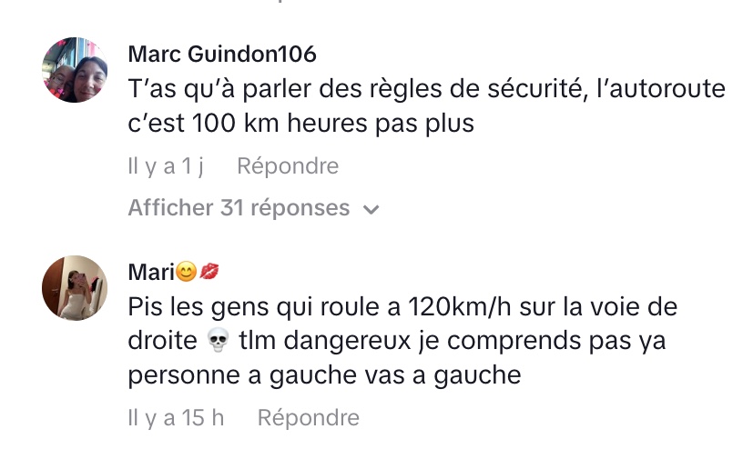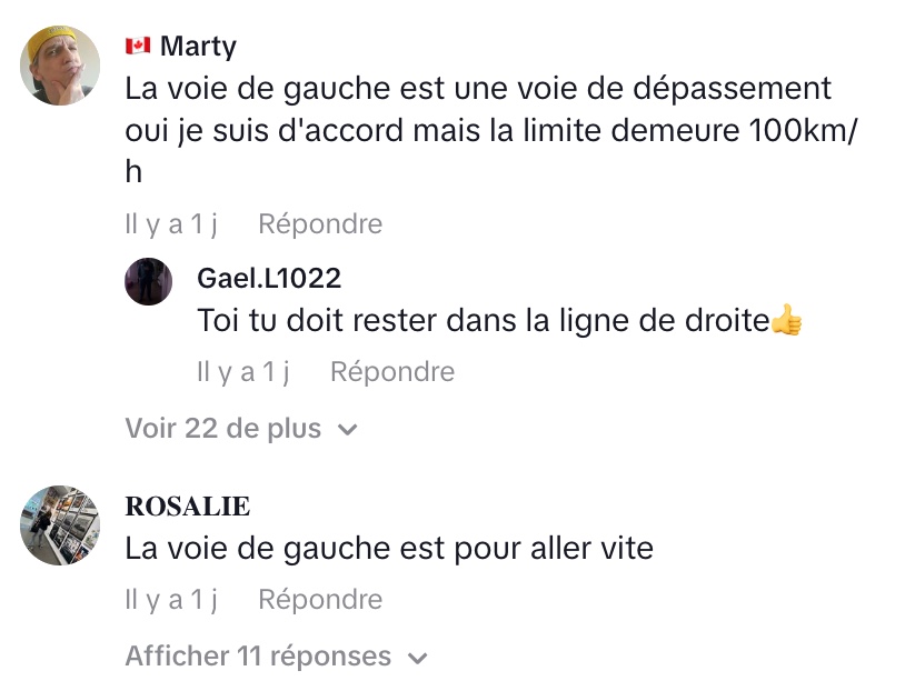 Son agacement provient d’une situation où il a été bloqué pendant « six, sept minutes » par un conducteur roulant continuellement dans cette voie sans dépasser. Malgré une attente patiente et le maintien d’une bonne distance, puis un léger rapprochement pour signaler sa présence, le conducteur n’a pas bougé, manquant plusieurs occasions de se rabattre à droite.