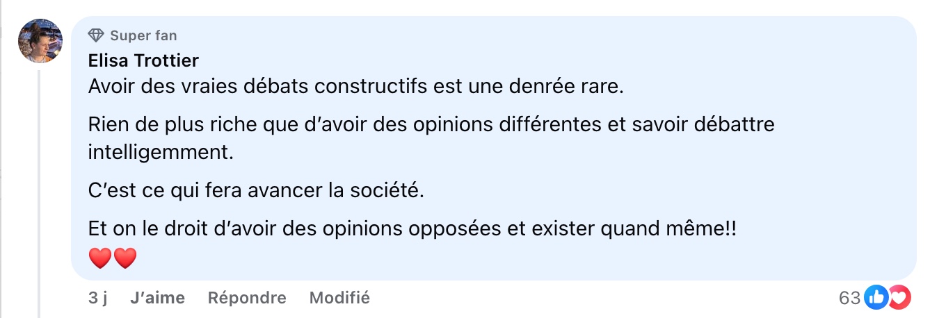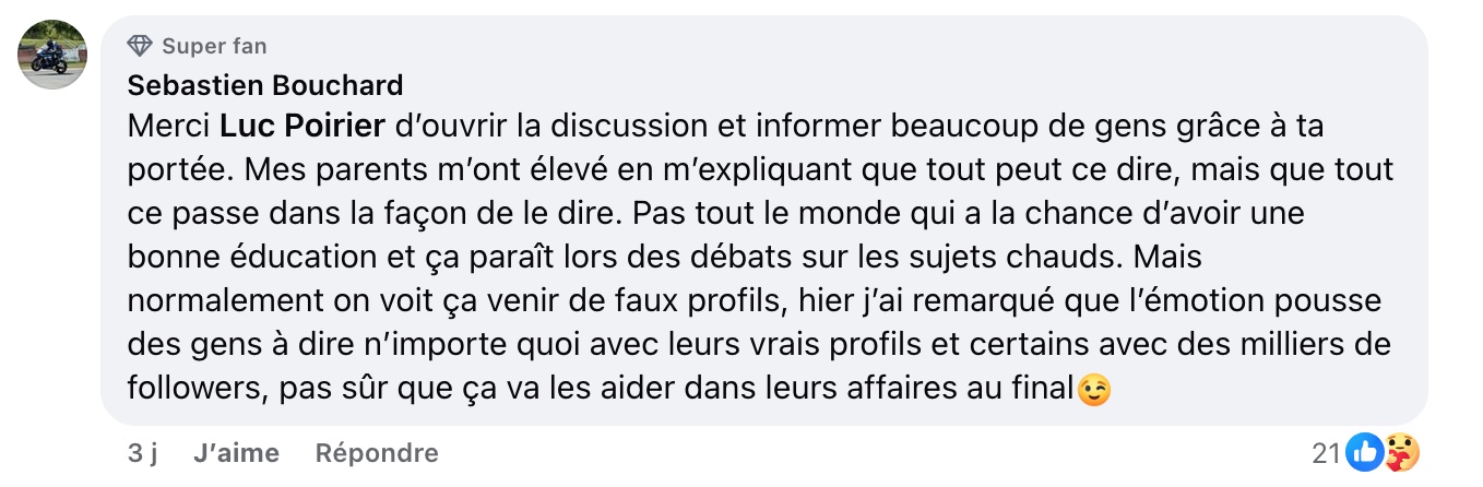 Cependant, il insiste sur l’importance de rester polis et constructifs. Poirier souligne qu’il ne veut pas que ses plateformes deviennent un terrain d’insultes ou de propos haineux, préférant encourager des discussions intelligentes et respectueuses. « Sinon, on va finir avec du contenu licornes et calinours », ironise-t-il.