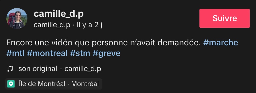 @camille_d.p Encore une vidéo que personne n’avait demandée. #marche #mtl #montreal #stm #greve ♬ son original – camille_d.p