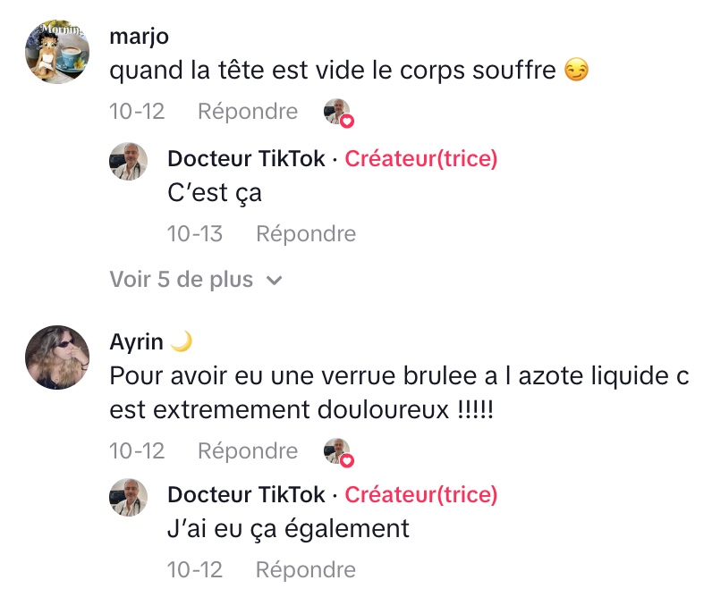 Le Docteur TikTok, dans cette séquence, met en lumière une nouvelle tendance alarmante baptisée le « tattoo par le froid » ou marquage par cryothérapie. Il décrit le procédé comme suit : on trempe un fer dans de l’azote liquide , puis on l’applique sur la peau pendant quelques secondes.