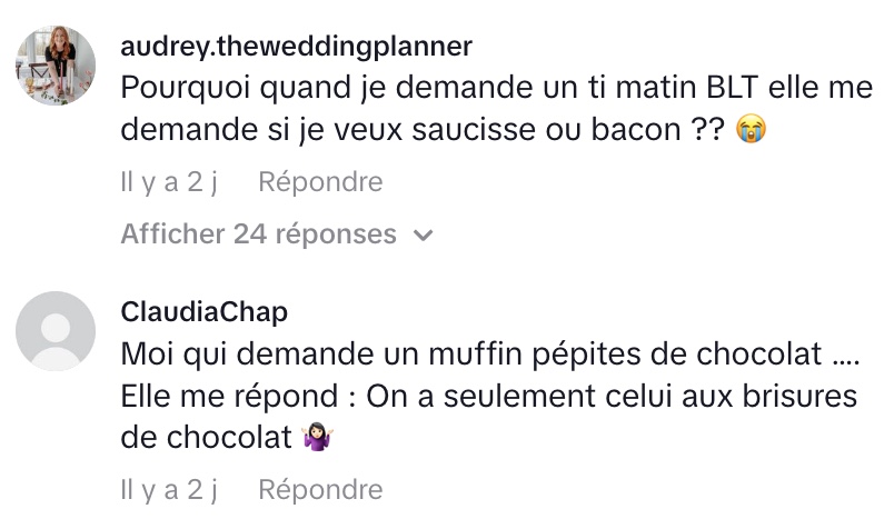 Elle a exprimé son étonnement avec un « Oh my God ! », jurant sur la tête de ses enfants qu’elle avait finalement accepté le terme suggéré : « Non, non, je vais prendre gâteau d’anniversaire. » Ce moment a touché une corde sensible chez les internautes, beaucoup y voyant un exemple de la rigidité linguistique ou d’une simple erreur de communication. Les commentaires ont fusé, partageant des expériences similaires.
