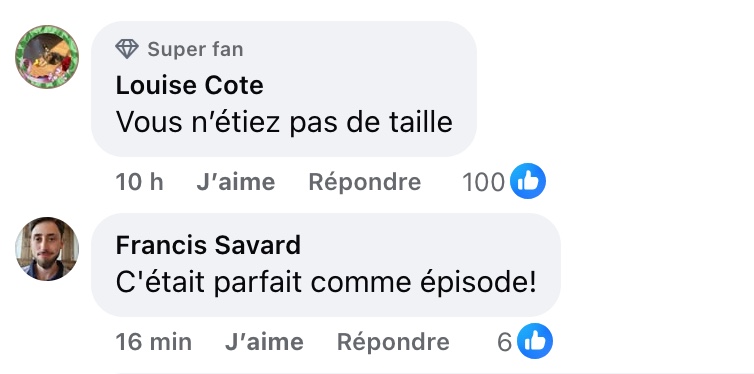 Malgré ce moment de tension, il est clair que Jean-Sébastien Girard n’a pas apprécié la soirée, mais il a visiblement su garder son sens de l’humour en relatant l’événement. Vous pouvez entendre sa réaction en écoutant l’extrait à partir de 3:35.