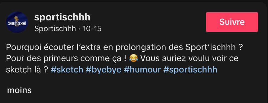 @sportischhh Pourquoi écouter l’extra en prolongation des Sport’ischhh ? Pour des primeurs comme ça ! 😂 Vous auriez voulu voir ce sketch là ? #sketch #byebye #humour #sportischhh ♬ son original – Sportischhh