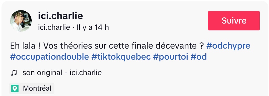 @ici.charlie Eh lala ! Vos théories sur cette finale décevante ? #odchypre #occupationdouble #tiktokquebec #pourtoi #od ♬ son original – ici.charlie
