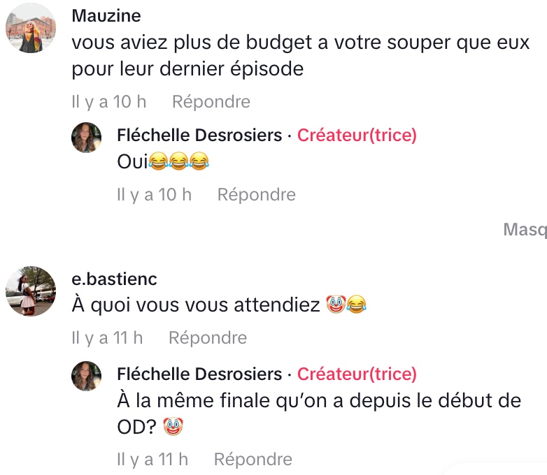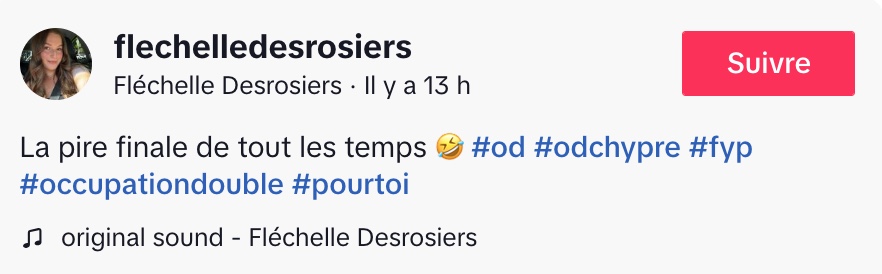 @flechelledesrosiers La pire finale de tout les temps 🤣 #od #odchypre #fyp #occupationdouble #pourtoi ♬ original sound – Fléchelle Desrosiers