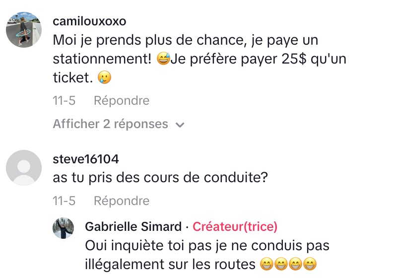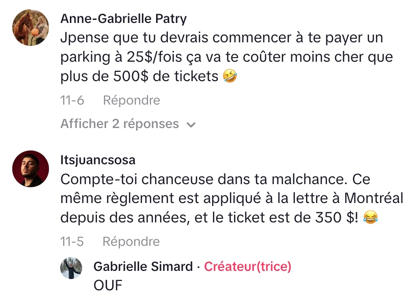 Gabrielle a partagé sa frustration sur TikTok après avoir reçu une nouvelle contravention, un événement qu’elle redoutait particulièrement lors d’un shooting photo dans le Vieux-Montréal. Elle exprime une véritable peur de se stationner dans ce quartier, ayant déjà payé une amende salée de 400 $ à cause de la complexité des panneaux de signalisation.