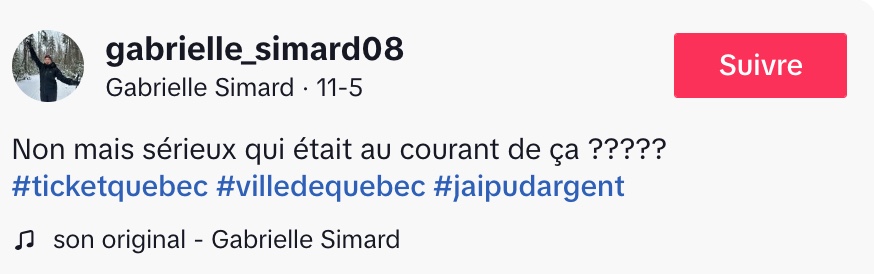 @gabrielle_simard08 Non mais sérieux qui était au courant de ça ????? #ticketquebec #villedequebec #jaipudargent ♬ son original – Gabrielle Simard