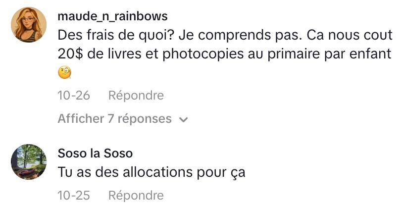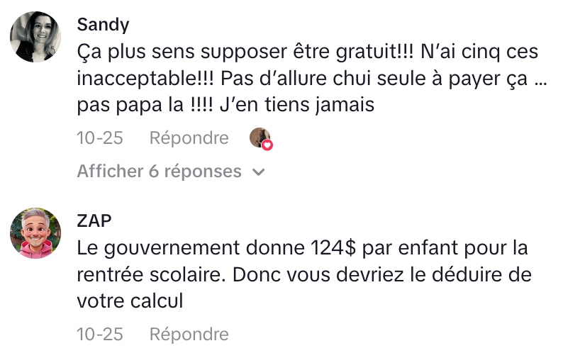 Claudine exprime un profond ras-le-bol concernant l’explosion des frais liés à la scolarité de ses enfants. Elle dénonce des coûts exorbitants qui s’accumulent tout au long de l’année, en plus des dépenses initiales de la rentrée.