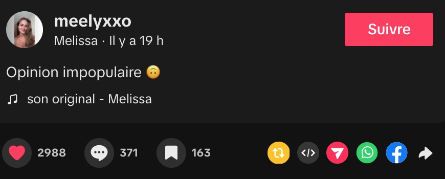 @meelyxxoOpinion impopulaire 🙃♬ son original – Melissa