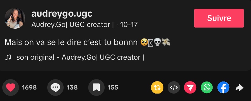 @audreygo.ugcMais on va se le dire c’est tu bonnn 🥺🫠💀💸♬ son original – Audrey.Go| UGC creator |