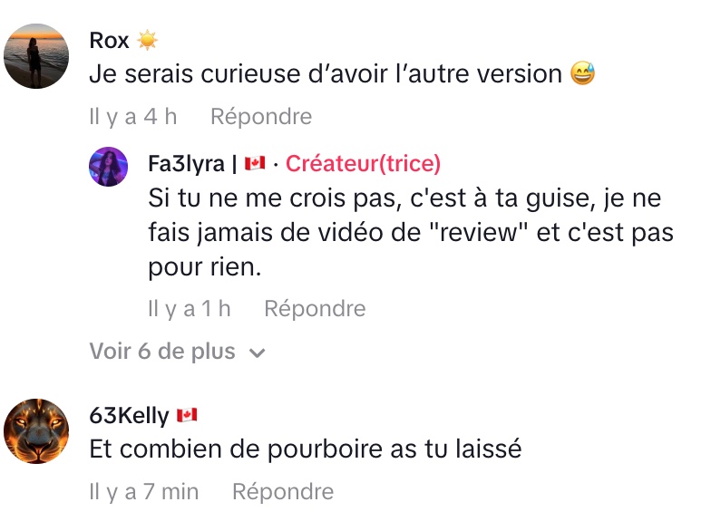 Selon son témoignage, l’hôtesse aurait répondu de façon très sèche, allant jusqu’à lancer des remarques jugées irrespectueuses. La situation aurait dégénéré en dispute, avec des cris des deux côtés, impliquant même un homme qu’elle croit être le propriétaire. Ce dernier aurait parlé en anglais, ce qui a créé encore plus de tension avec sa famille. Débordée par l’émotion, fa3lyraa affirme avoir fondu en larmes, expliquant qu’elle voulait seulement passer une belle soirée pour sa fête.
