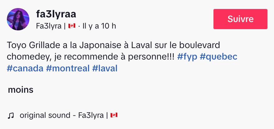 @fa3lyraa Toyo Grillade a la Japonaise à Laval sur le boulevard chomedey, je recommende à personne!!! #fyp #quebec #canada #montreal #laval ♬ original sound – Fa3lyra | 🇨🇦