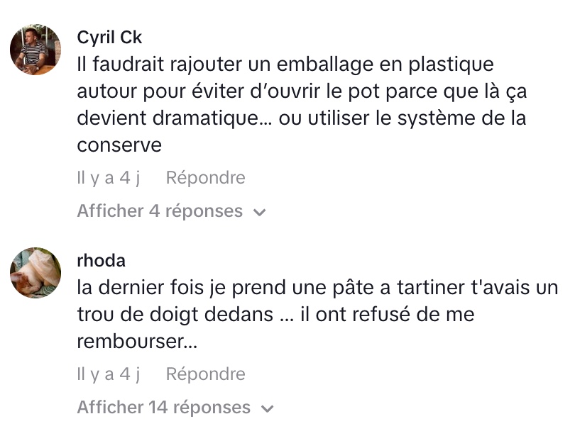 Elle insiste surtout sur le manque flagrant de savoir-vivre de ce geste. Pour elle, ouvrir un pot et y mettre son doigt, c’est déjà compromettre l’hygiène du produit, même si la personne croit que « ce n’est pas grave ». Le simple fait de l’ouvrir peut accélérer sa détérioration. Samia ne comprend pas comment on peut agir ainsi sans penser aux autres, surtout à la personne qui achètera le pot par la suite.