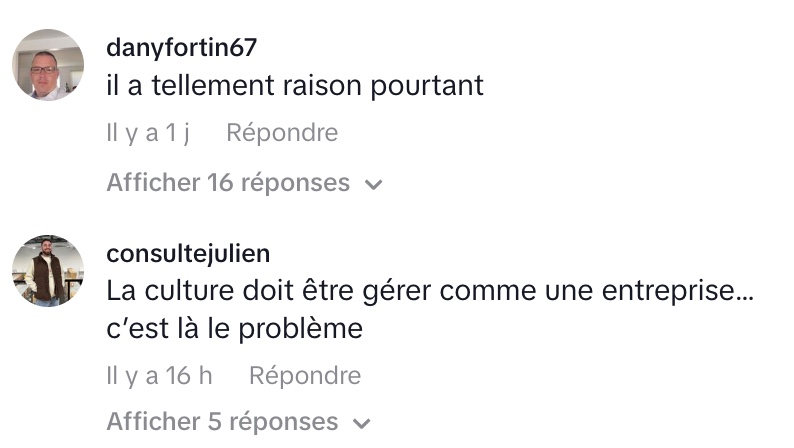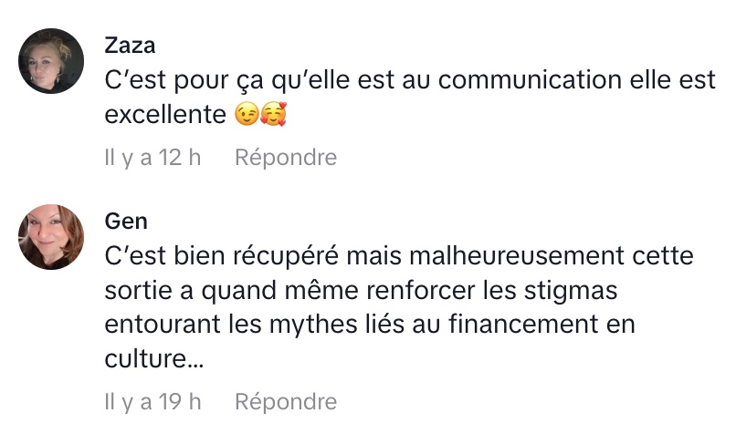Élisabeth souligne aussi le danger, pour des figures publiques associées à une entreprise, de voir leurs opinions personnelles confondues avec la vision de toute l’organisation. Elle insiste : ce n’est pas le rôle d’une entreprise d’émettre des opinions politiques ou sociales. Pour elle, cette crise découle avant tout d’une communication maladroite, dans un contexte déjà tendu par les débats sur le financement de la culture.