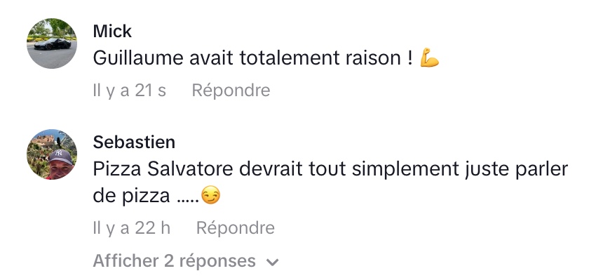 Elle précise que Guillaume n’aurait jamais dû s’exprimer publiquement sur un sujet qu’il ne maîtrisait pas, surtout un thème aussi sensible que la culture. Selon elle, ses propos ont été perçus à tort comme une position officielle de Pizza Salvatoré, donnant l’impression que l’entreprise « crachait » sur la culture québécoise, alors qu’elle s’y investit activement depuis des années. Elle rappelle qu’environ 50 % du budget publicitaire est réinjecté dans des productions québécoises, contribuant ainsi au financement de la culture, autant par des fonds privés que publics.