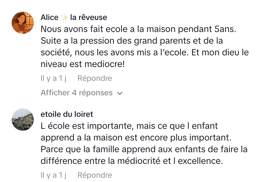 Max provoque un vif débat dans sa vidéo TikTok en affirmant que ses enfants « n’iront jamais à l’école ». Selon lui, le système scolaire traditionnel ne prépare pas réellement à la réussite ni au bonheur. Il critique le fait que les élèves apprennent auprès de personnes qu’il considère comme peu accomplies, et que l’on y transmet des connaissances qu’il juge inutiles pour la vie réelle. Pour Max, l’école formerait plutôt des « robots » destinés à la médiocrité, en mettant l’accent sur des matières qui ne servent pas à bâtir une vie épanouie ou financièrement stable.