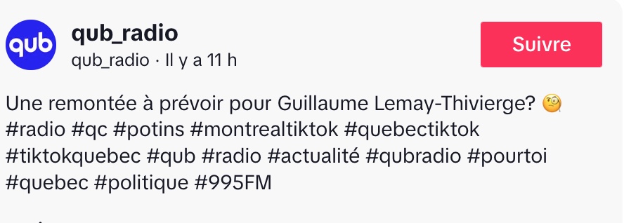 @qub_radioUne remontée à prévoir pour Guillaume Lemay-Thivierge? 🧐 #radio #qc #potins #montrealtiktok #quebectiktok #tiktokquebec #qub #radio #actualité #qubradio #pourtoi #quebec #politique #995FM♬ son original – qub_radio