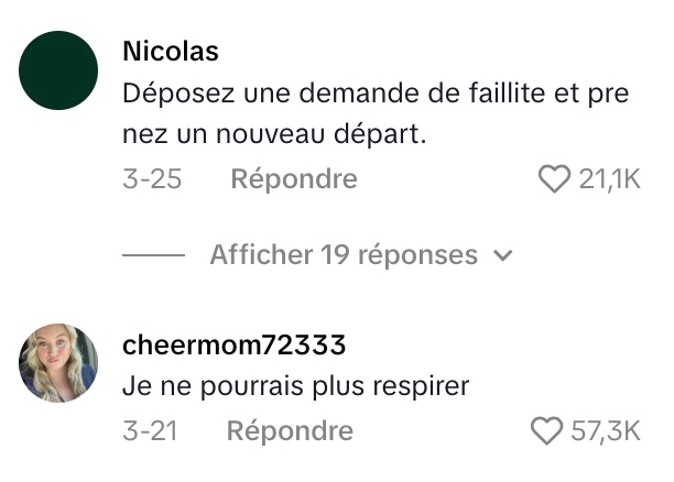 Elle documente désormais son parcours sur TikTok, dans l’espoir d’encourager d’autres personnes prises au piège de l’endettement et, peut-être, de générer quelques revenus supplémentaires. Entre petits boulots, ventes d’objets, négociations de taux et side hustles, elle se bat pour alléger ce fardeau. Son témoignage rappelle avec force à quel point les dettes étudiantes peuvent peser sur une vie entière. (via Conneries QC)